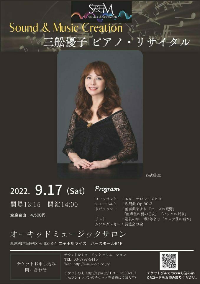 SMC Vol.4 三舩優子 22/9/17(土) オーキッド ミュージック サロン シェア ツイート サウンド&ミュージッククリエーションのコンサートシリーズ第4弾 公演情報 ジャンル ピアノ・鍵盤楽器 ※新型コロナウイルス感染拡大防止にご協力ください。 料金 全席自由-4,500円 表示できるチケット情報はありません詳しくはこちら キャスト&スタッフ 出演 三舩優子 お問い合わせ (株)サウンド・アンド・ミュージック・クリエーション シェア ツイート