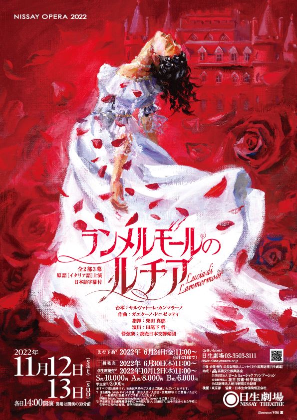 NISSAY OPERA 2022『ランメルモールのルチア』 22/11/12(土)~22/11/13(日) 日生劇場 シェア ツイート 愛と狂乱の悲劇…ベルカント・オペラの白眉。2020 年に翻案上演した作品を、全幕上演の「完全版」でお贈りします! 公演情報 ジャンル 声楽 オペラ 未就学児童は入場不可。イタリア語上演、日本語字幕付。 料金 S席-10,000円 A席-8,000円 B席-6,000円 表示できるチケット情報はありません詳しくはこちら キャスト&スタッフ 指揮 柴田真郁 演出 田尾下哲 演奏 読売日本交響楽団 出演 高橋維 城宏憲 加耒徹 ジョン・ハオ 高畠伸吾 与田朝子 吉田連 田代真奈美 森谷真理 宮里直樹 大沼徹 妻屋秀和 伊藤達人 藤井麻美 布施雅也 お問い合わせ 日生劇場 公式サイト シェア ツイート