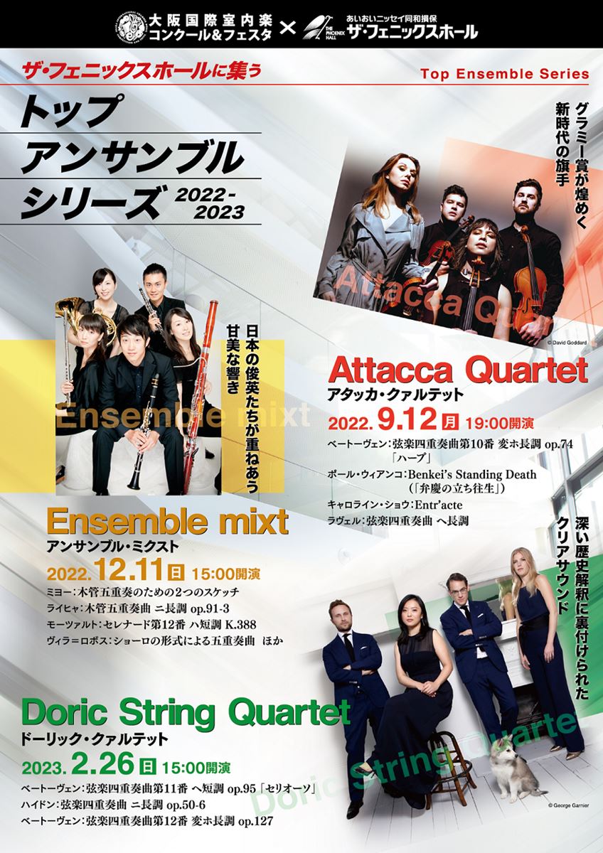 アタッカ・クァルテット 22/9/12(月) あいおいニッセイ同和損保 ザ・フェニックスホール シェア ツイート ザ・フェニックスホールに集うトップアンサンブルシリーズ2022-2023 公演情報 ジャンル 室内楽 器楽 未就学児童は入場不可。 料金 一般-5,000円 一般-指定 表示できるチケット情報はありません詳しくはこちら キャスト&スタッフ 出演 アタッカ・クァルテット メンバー エイミー・シュローダー ドメニク・サレーニ ネイサン・シュラム アンドリュー・イー お問い合わせ ザ・フェニックスホールチケットセンター 公式サイト シェア ツイート