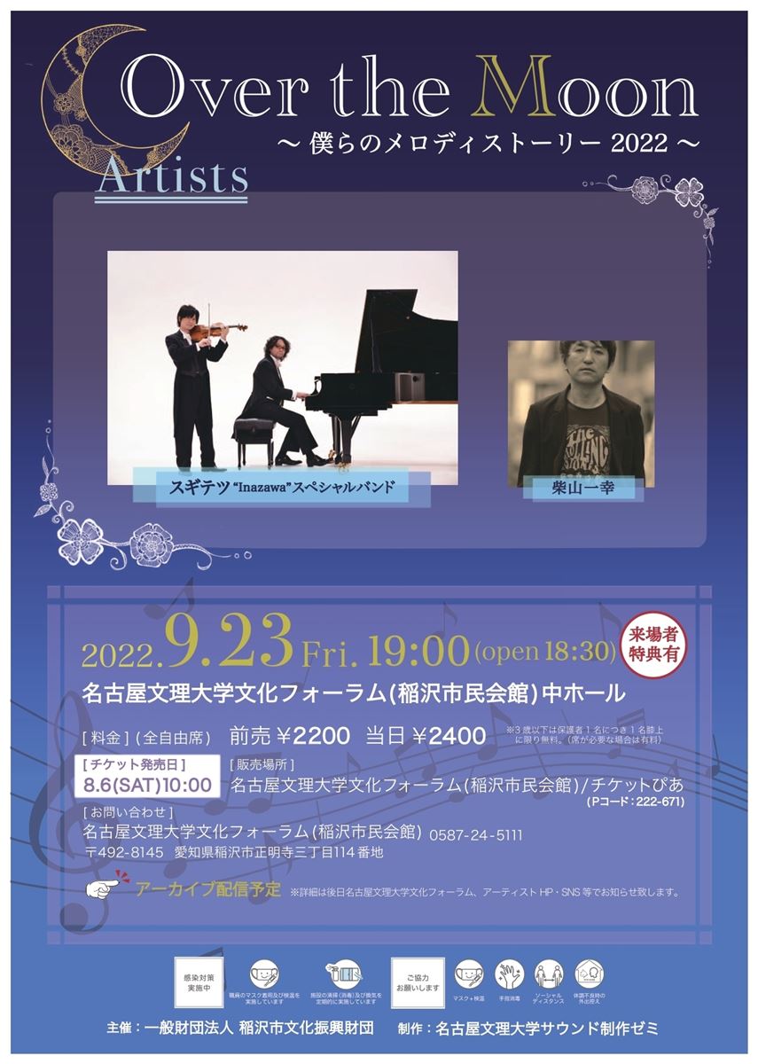 名古屋文理大学サウンド制作ゼミ公演 Over the Moon ~ぼくらのメロディストーリー2022~ 22/9/23(金) 名古屋文理大学文化フォーラム 中ホール シェア ツイート 公演情報 ジャンル 室内楽 器楽 3歳以下は保護者膝上に限り無料。但し、席が必要な場合は有料。 料金 全自由席-2,200円 表示できるチケット情報はありません詳しくはこちら キャスト&スタッフ 出演 スギテツ 柴山一幸 お問い合わせ 名古屋文理大学文化フォーラム(稲沢市民会館) シェア ツイート