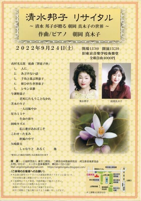清水邦子リサイタル 清水邦子が贈る朝岡真木子の世界 22/9/24(土) 旧東京音楽学校奏楽堂 シェア ツイート 清水邦子が朝岡真木子の組曲『智恵子抄』全曲に挑みます。 公演情報 ジャンル 声楽 料金 全席自由-4,000円 表示できるチケット情報はありません詳しくはこちら キャスト&スタッフ 出演 朝岡真木子 清水邦子 [出演]朝岡真木子 / 清水邦子 お問い合わせ エンゼル音楽事務所 シェア ツイート