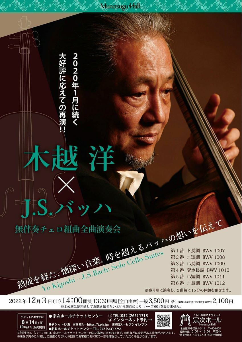 学生券・セット券は、宗次ホールチケットセンターでのみ販売いたします。未就学児童は入場不可。マスクを着用しない方の入館はお断りいたします。公演開催についての最新情報は宗次ホールホームページまたは問合せ先までご確認ください。感染対策/座席定員/中止・振替等についてhttps://munetsuguhall.com/news/ 入場整理番号についてhttps://munetsuguhall.com/news/general/entry-2478.html ご確認の上、ご来場いただきますようお願い致します。