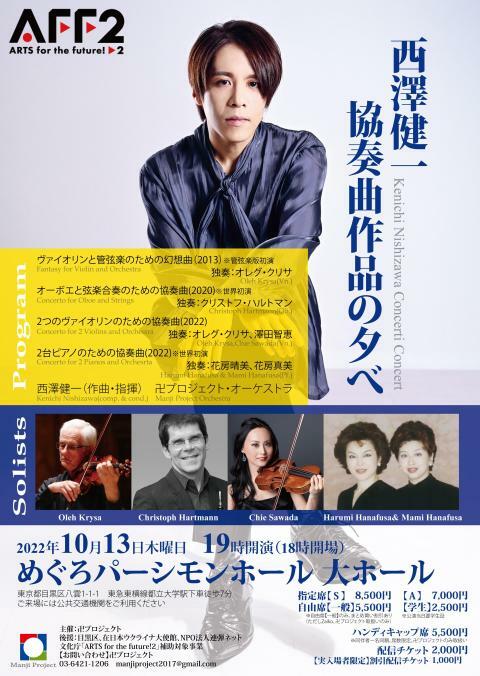 西澤健一 協奏曲作品の夕べ 22/10/13(木) めぐろパーシモンホール 大ホール シェア ツイート コロナ禍とウクライナ侵攻の影響を受け描かれた気鋭の作品を、世界的名匠たちによる独奏で披露 公演情報 ジャンル オーケストラ 未就学児入場不可。学生券は公演当日要学生証。主催者ホームページで最新情報を確認のうえマスク着用でご来場ください。※1階1列~16列をご希望の場合は指定席をお求めください。詳細は卍プロジェクトウェブサイト https://www.manjiproject.com まで。 料金 自由席 一般-5,500円 自由席 学生-2,500円 表示できるチケット情報はありません詳しくはこちら キャスト&スタッフ 指揮 西澤健一 出演 オレグ・クリサ クリストフ・ハルトマン 澤田智恵 花房晴美&真美 お問い合わせ 卍プロジェクト シェア ツイート