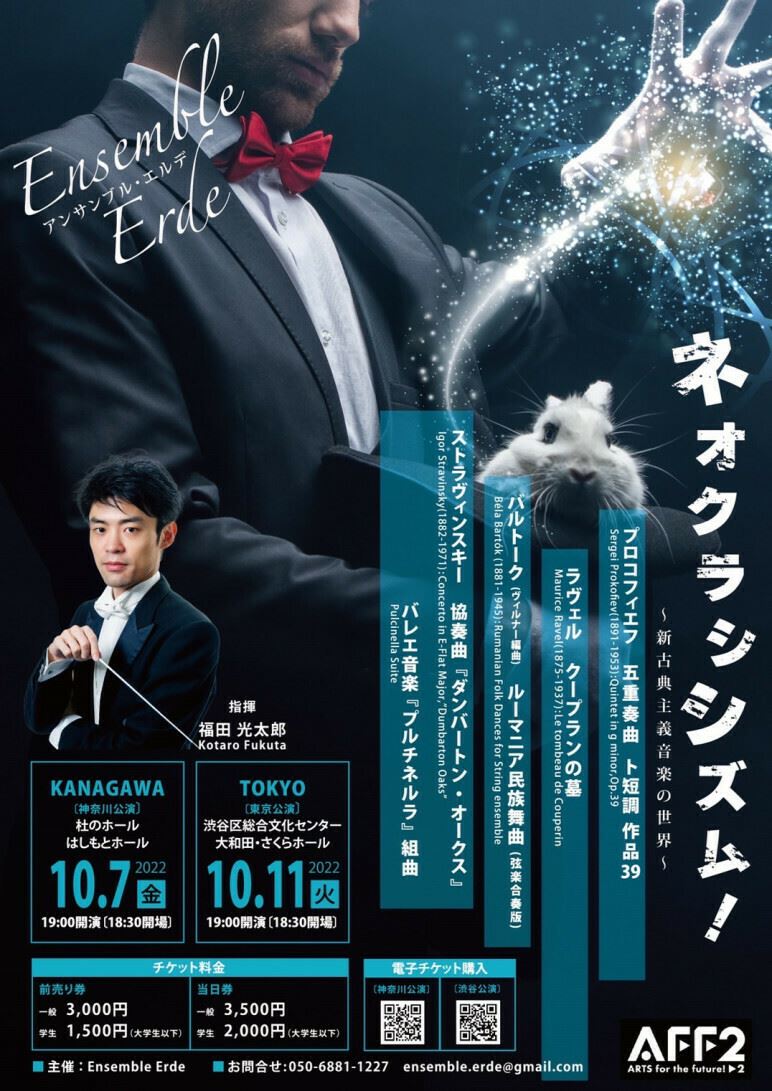 ネオクラシシズム! ~新古典主義音楽の世界~ 22/10/7(金)~22/10/11(火) 杜のホールはしもと・ホール、渋谷区文化総合センター大和田 さくらホール シェア ツイート 相模原市を拠点とする室内楽団体「Ensemble Erde」による室内オーケストラ企画の第二弾! 公演情報 ジャンル 室内楽 器楽 料金 前売り 一般-3,000円 前売り 学生-1,500円 表示できるチケット情報はありません詳しくはこちら お問い合わせ Ensemble Erde シェア ツイート
