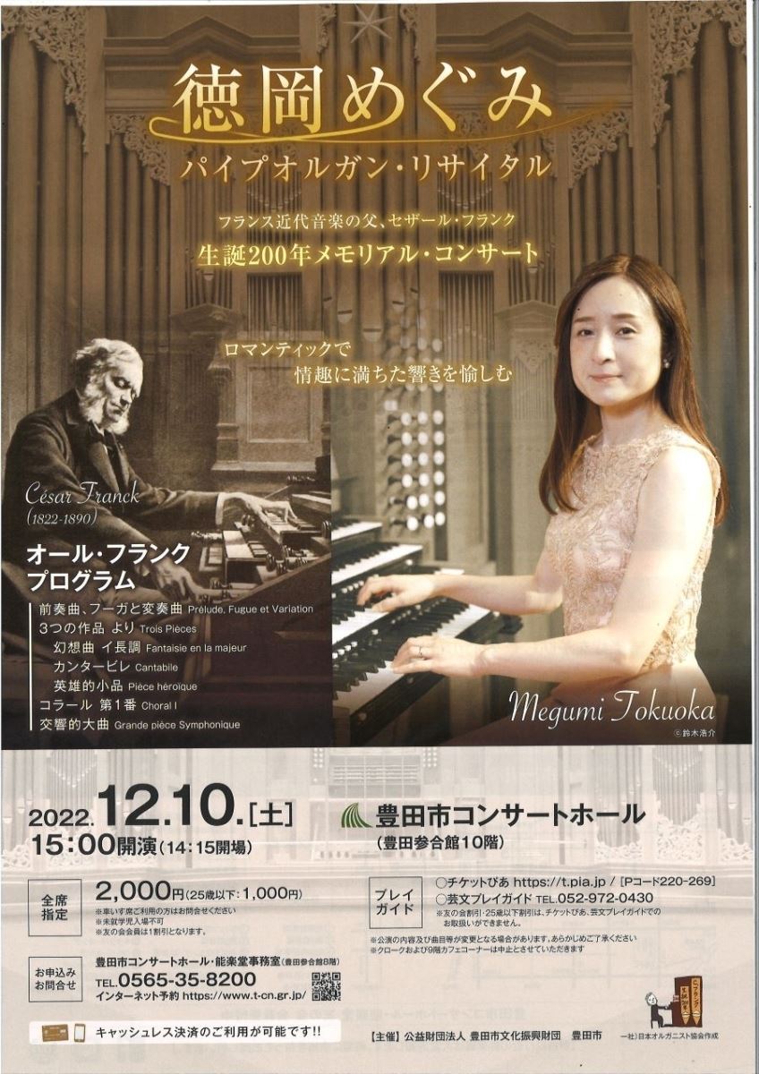 徳岡めぐみパイプオルガン・リサイタル 22/12/10(土) 豊田市コンサートホール シェア ツイート 公演情報 ジャンル ピアノ・鍵盤楽器 未就学児は入場不可。 料金 一般-2,000円 表示できるチケット情報はありません詳しくはこちら お問い合わせ 豊田市コンサートホール シェア ツイート
