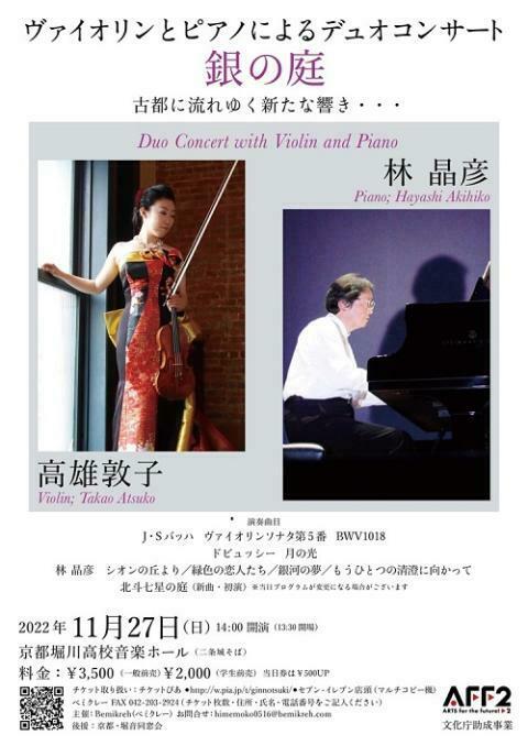 高雄敦子(vl)/林晶彦(p) 22/11/27(日) 京都市立京都堀川音楽高等学校 音楽ホール シェア ツイート 公演情報 ジャンル ピアノ・鍵盤楽器 器楽 未就学児童は入場不可。公演内容に関する詳細はhimemoko0516@bemikreh.comまで。 料金 自由席 一般-3,500円 自由席 学生-2,000円 自由席 学生-公演当日要学生証 表示できるチケット情報はありません詳しくはこちら キャスト&スタッフ 出演 林晶彦 高雄敦子 シェア ツイート