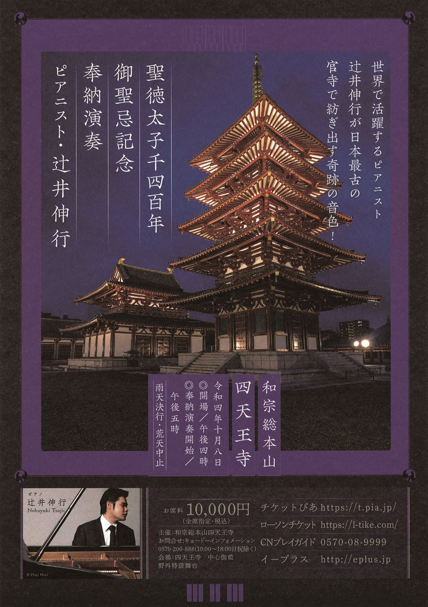 辻井伸行(p) 22/10/8(土) 四天王寺 中心伽藍 野外特設舞台 シェア ツイート 聖徳太子千四百年御聖忌記念奉納演奏会 公演情報 ジャンル ピアノ・鍵盤楽器 未就学児童は入場不可。 料金 全席指定-10,000円 表示できるチケット情報はありません詳しくはこちら キャスト&スタッフ ピアノ 辻井伸行 お問い合わせ キョードーインフォメーション 公式サイト シェア ツイート