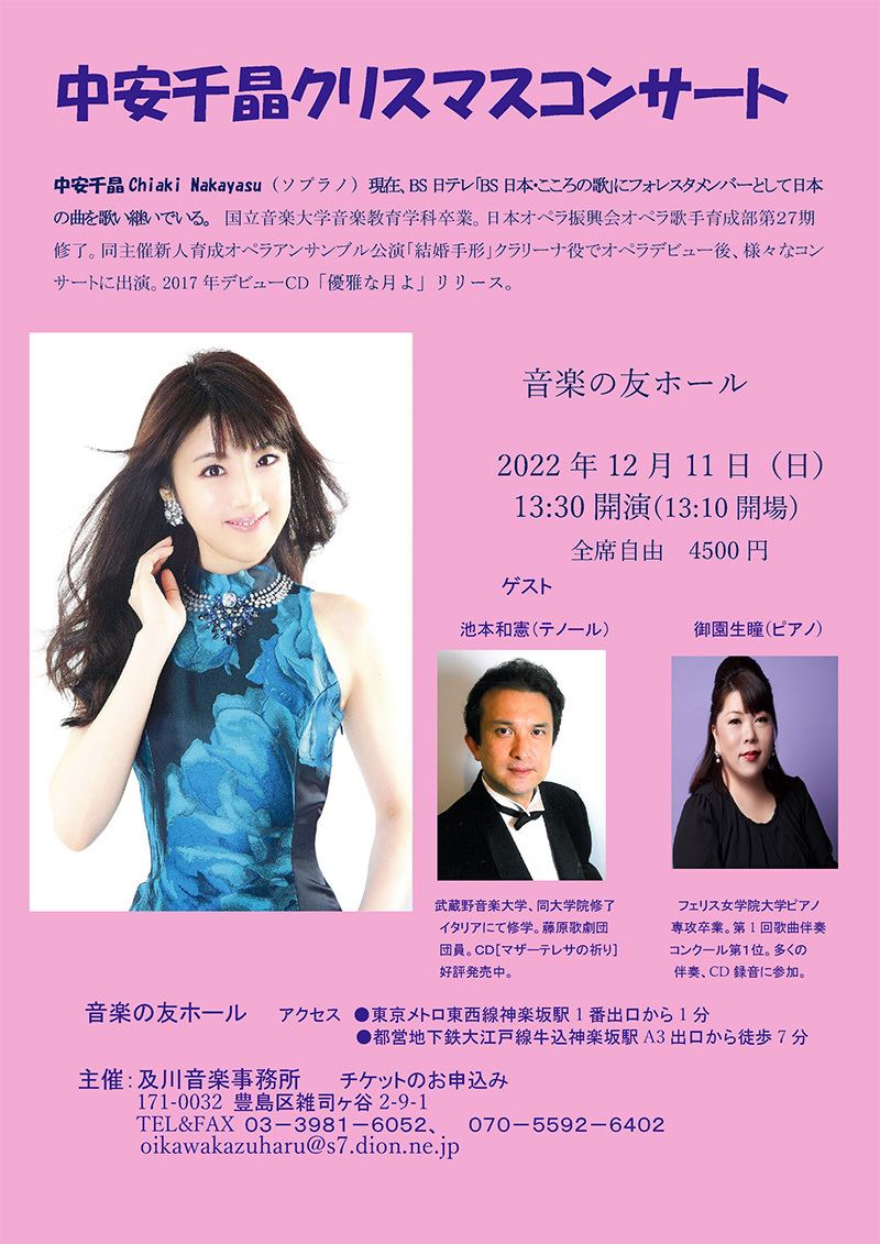 中安千晶クリスマスコンサート 22/12/11(日) 音楽の友ホール シェア ツイート 現在BS日テレ[BS 日本の歌・こころの歌」にフォレスタメンバーとして日本の曲を歌い継いでいる。 公演情報 ジャンル 声楽 料金 全席自由-4,500円 表示できるチケット情報はありません詳しくはこちら キャスト&スタッフ 出演 中安千晶 御園生瞳 お問い合わせ 及川音楽事務所 シェア ツイート