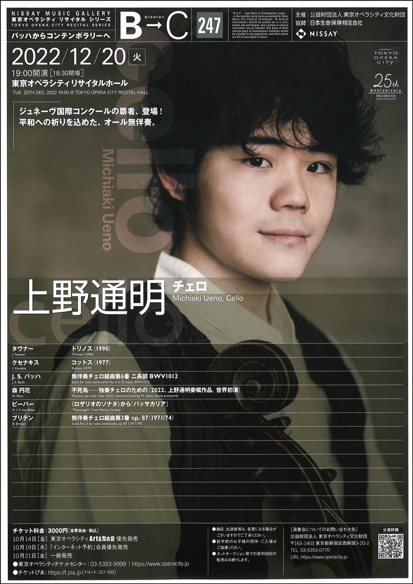 B→C バッハからコンテンポラリーへ247 上野通明(チェロ) 22/12/20(火) 東京オペラシティ リサイタルホール シェア ツイート ジュネーヴ国際コンクールの覇者、登場!平和への祈りを込めた、オール無伴奏。 公演情報 ジャンル 器楽 未就学児童は入場不可。 料金 全席自由-3,000円 表示できるチケット情報はありません詳しくはこちら キャスト&スタッフ チェロ 上野通明 お問い合わせ 東京オペラシティチケットセンター 公式サイト シェア ツイート
