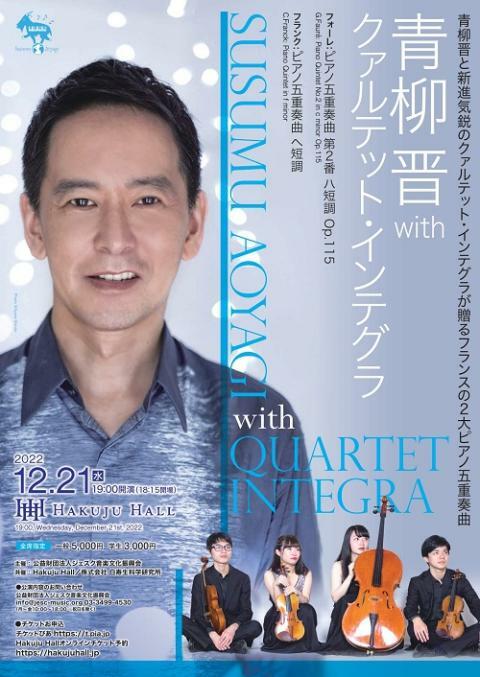青柳晋 with クァルテット・インテグラ 22/12/21(水) Hakuju Hall シェア ツイート 公演情報 ジャンル 室内楽 ピアノ・鍵盤楽器 未就学児童は入場不可。 料金 一般-5,000円 学生-3,000円 学生-25歳以下/公演当日要学生証 表示できるチケット情報はありません詳しくはこちら キャスト&スタッフ 出演 青柳晋 クァルテット・インテグラ お問い合わせ ジェスク音楽文化振興会 シェア ツイート