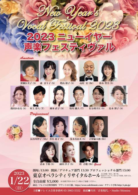 2023ニューイヤー声楽フェスティヴァル 23/1/22(日) 東京オペラシティ リサイタルホール シェア ツイート 公演情報 ジャンル 声楽 未就学児童は入場不可。 料金 全自由-3,000円 表示できるチケット情報はありません詳しくはこちら キャスト&スタッフ 出演 深瀬公美子 森まり子 増山裕子 高村宏 鈴木智美 揚田かおる 村上彩人 岡本直子 牧川織大 佐分利幸江 島本博子 長谷川智子 葦名恵子 茂木真由美 吉留倫太郎 清永千裕 前田洋子 程音聡 お問い合わせ ソレイユ音楽事務所 シェア ツイート