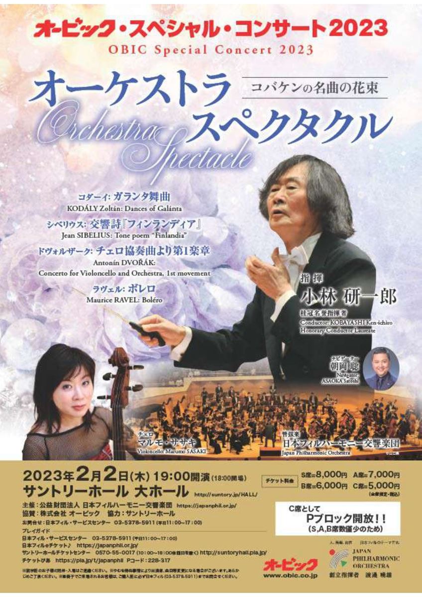 日本フィルハーモニー交響楽団 オービック・スペシャル・コンサート2023 コバケンの名曲の花束 23/2/2(木) サントリーホール 大ホール シェア ツイート コダーイ:ガランタ舞曲/シベリウス:交響詩《フィンランディア》/ドヴォルジャーク:チェロ協奏曲より第1楽章/ラヴェル:ボレロ 公演情報 ジャンル オーケストラ 未就学児童は入場不可。ご来場前にかならず、以下主催者ホームページに掲載の「新型コロナウイルス感染症対策へのご理解とご協力のお願い」をご一読いただきますようお願いいたします。(https://www.japanphil.or.jp/orchestra/news/24248) 料金 S席-8,000円 A席-7,000円 B席-6,000円 C席-5,000円 表示できるチケット情報はありません詳しくはこちら キャスト&スタッフ 指揮 小林研一郎 管弦楽 日本フィルハーモニー交響楽団 チェロ マルモ・ササキ 司会 朝岡聡 お問い合わせ 日本フィル・サービスセンター 公式サイト シェア ツイート
