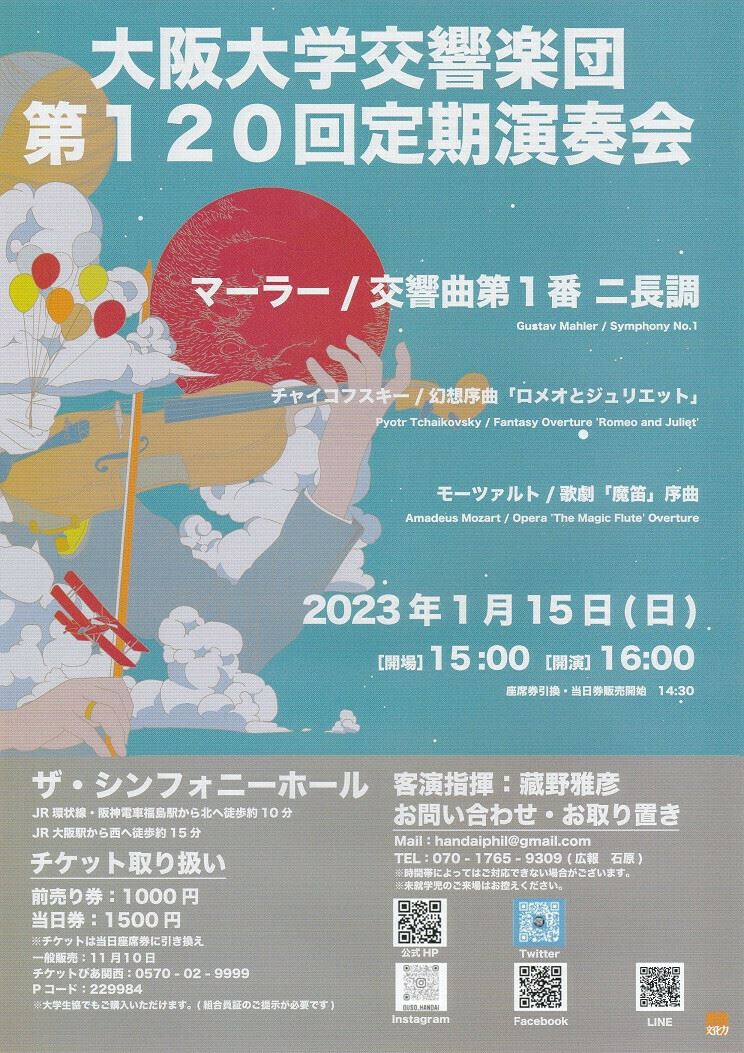 大阪大学交響楽団第120回定期演奏会 23/1/15(日) ザ・シンフォニーホール シェア ツイート 公演情報 ジャンル オーケストラ 未就学児の入場はご遠慮ください。 料金 自由席-1,000円 表示できるチケット情報はありません詳しくはこちら キャスト&スタッフ 指揮 藏野雅彦 管弦楽 大阪大学交響楽団 お問い合わせ 大阪大学交響楽団 公式サイト シェア ツイート