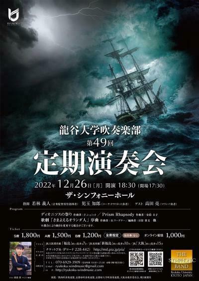 【動画配信】龍谷大学吹奏楽部 第49回定期演奏会 22/12/26(月) PIA LIVE STREAM シェア ツイート 公演情報 ジャンル 吹奏楽 この公演はオンライン動画配信でのみご覧いただけます。配信時間は予定のため変更の可能性あり。 【PIA LIVE STREAM視聴についての問合せ】電話:017-718-3572/メール:event@linkst.jp(平日10:00-18:00) ※問合せ対応は該当公演(土日祝含む)の終演後1時間程度で終了とさせていただきます。【公演に関する問合せ】ryukoku.windmusic@gmail.com 料金 視聴券-1,000円 表示できるチケット情報はありません詳しくはこちら キャスト&スタッフ 出演 龍谷大学吹奏楽部 シェア ツイート
