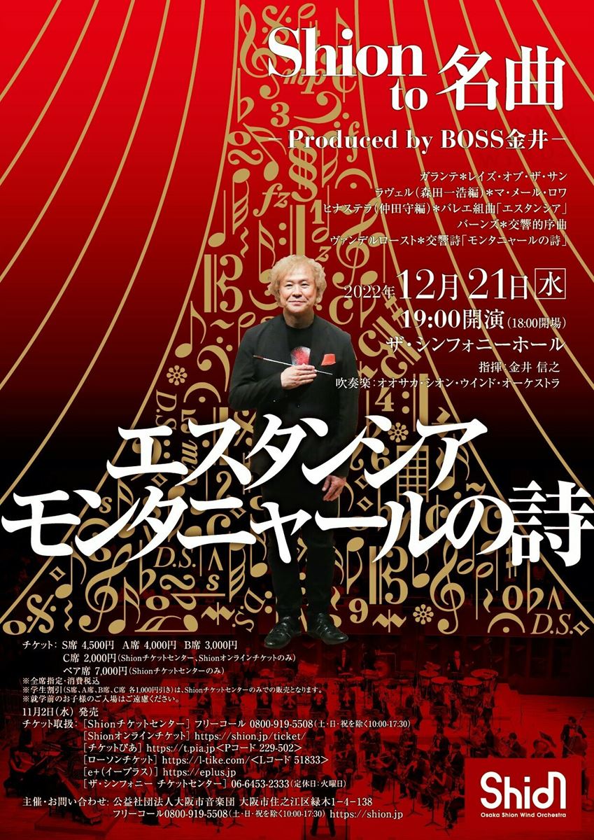 Shion to 名曲~Produced by BOSS 金井~ 22/12/21(水) ザ・シンフォニーホール シェア ツイート 公演情報 ジャンル 吹奏楽 C席、ペア席は取り扱いなし。未就学児童は入場不可。 料金 S席 一般-4,500円 A席 一般-4,000円 B席 一般-3,000円 表示できるチケット情報はありません詳しくはこちら キャスト&スタッフ 指揮 金井信之 演奏 Osaka Shion Wind Orchestra お問い合わせ Shionチケットセンター シェア ツイート