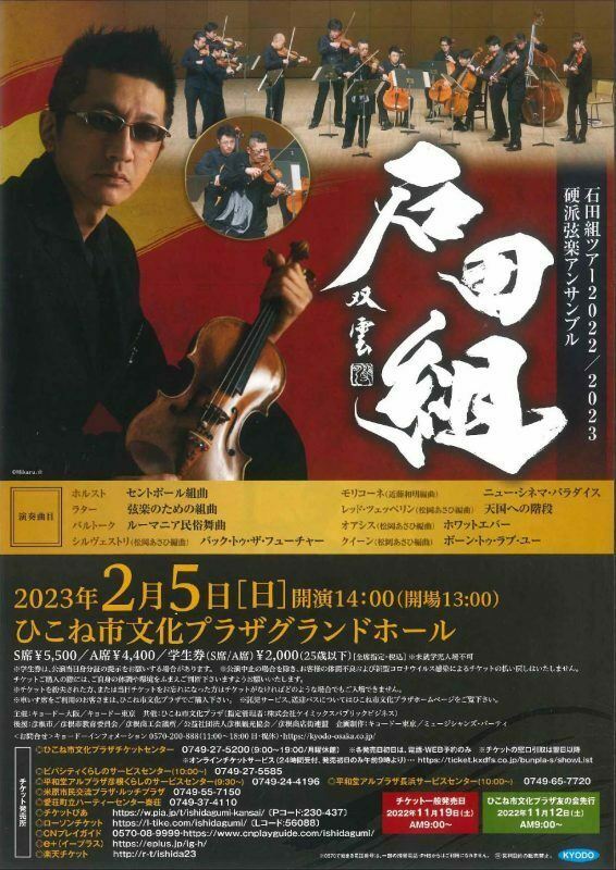 ※未就学児童は入場不可。※都合により演奏曲目が変更になる場合があります。予めご了承ください。※公演中止の場合を除き、お客様の体調不良および新型コロナウイルス感染によるチケットの払い戻しはいたしません。チケットご購入の際には、ご自身の体調や環境をふまえご判断くださいますようお願いいたします。※学生券は、公演当日身分証の提示をお願いする場合があります。