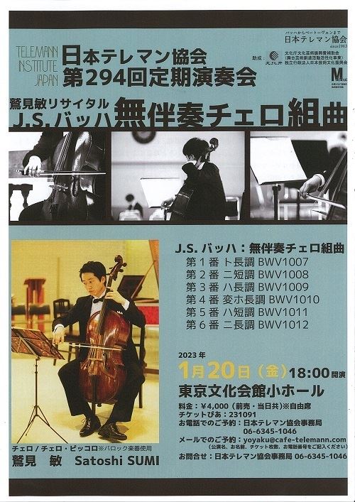 日本テレマン協会 第294回定期演奏会 無伴奏チェロ組曲 23/1/20(金) 東京文化会館 小ホール シェア ツイート バッハ:無伴奏チェロ組曲全曲公演 公演情報 ジャンル 器楽 料金 自由席-4,000円 表示できるチケット情報はありません詳しくはこちら キャスト&スタッフ 出演 鷲見敏 お問い合わせ 日本テレマン協会(平日10:00~18:00) シェア ツイート