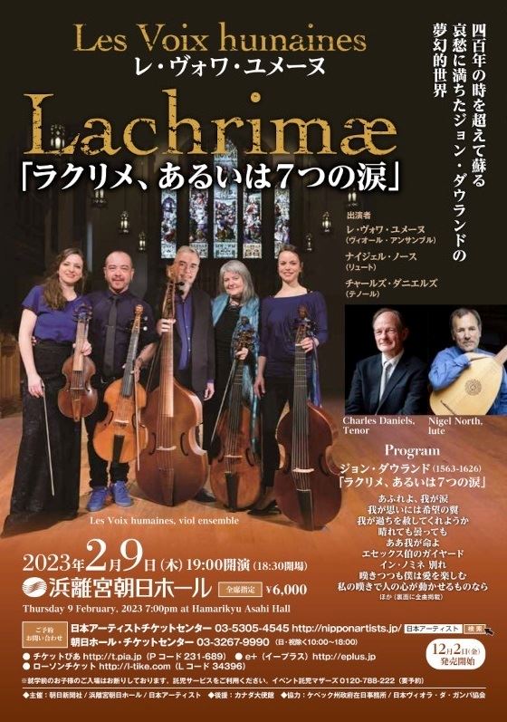 レ・ヴォワ・ユメーヌ(gamb) 23/2/9(木) 浜離宮朝日ホール シェア ツイート 400年の時を超えて蘇るダウランドの夢幻的世界 公演情報 ジャンル 室内楽 器楽 未就学児童は入場不可。 料金 全席指定-6,000円 表示できるチケット情報はありません詳しくはこちら キャスト&スタッフ 出演 レ・ヴォワ・ユメーヌ 共演 ナイジェル・ノース チャールズ・ダニエルズ お問い合わせ 日本アーティストチケットセンター 公式サイト シェア ツイート