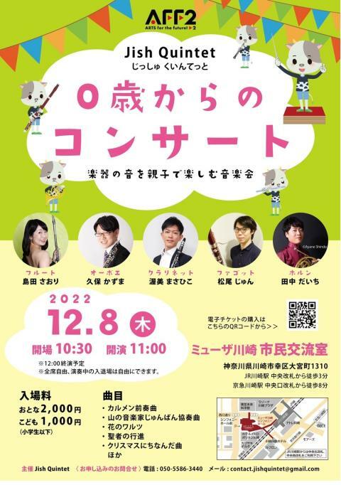 0歳からのコンサート 22/12/8(木) ミューザ川崎 市民交流室 シェア ツイート 楽器の音を親子で楽しむ音楽会 公演情報 ジャンル 器楽 室内楽 料金 全席自由 おとな-2,000円 全席自由 こども(小学生以下)-1,000円 表示できるチケット情報はありません詳しくはこちら キャスト&スタッフ 出演 Jish Quintet [出演]Jish Quintet お問い合わせ Jish Quintet シェア ツイート