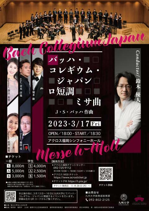 バッハ・コレギウム・ジャパン ロ短調ミサ曲 23/3/17(金) アクロス福岡 福岡シンフォニーホール シェア ツイート 公演情報 ジャンル オーケストラ 未就学児童は入場不可。学生券は公演会当日学生証提示が必要。 料金 S席一般-8,000円 S席学生-4,000円 A席一般-5,000円 A席学生-2,500円 B席一般-3,000円 B席学生-1,500円 表示できるチケット情報はありません詳しくはこちら お問い合わせ 九州大学総務部総務課総務第一係 シェア ツイート