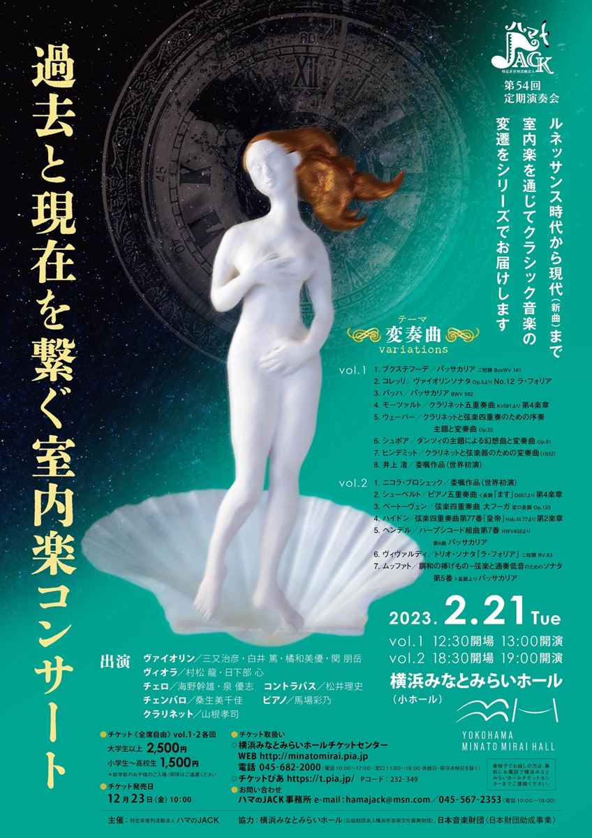 第54回 ハマのJACK 定期演奏会 過去と現在を繋ぐ室内楽コンサート 23/2/21(火) 横浜みなとみらいホール 小ホール シェア ツイート 公演情報 ジャンル 器楽 室内楽 未就学児童は入場不可。 料金 全席自由 大学生以上-2,500円 全席自由 小学生~高校生-1,500円 表示できるチケット情報はありません詳しくはこちら キャスト&スタッフ 出演 ハマのJACK お問い合わせ ハマのJACK事務局 公式サイト シェア ツイート