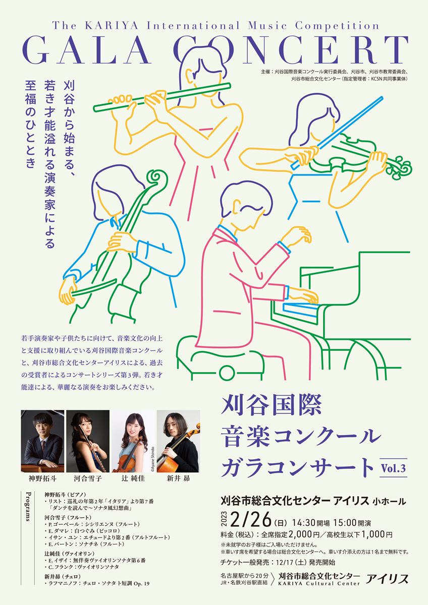 刈谷国際音楽コンクール ガラ・コンサート vol.3 23/2/26(日) 刈谷市総合文化センター 小ホール シェア ツイート 公演情報 ジャンル 器楽 室内楽 未就学児童は入場不可。 料金 一般-2,000円 大学生以下-1,000円 表示できるチケット情報はありません詳しくはこちら キャスト&スタッフ 出演 河合雪子 辻純佳 お問い合わせ 刈谷市総合文化センター シェア ツイート