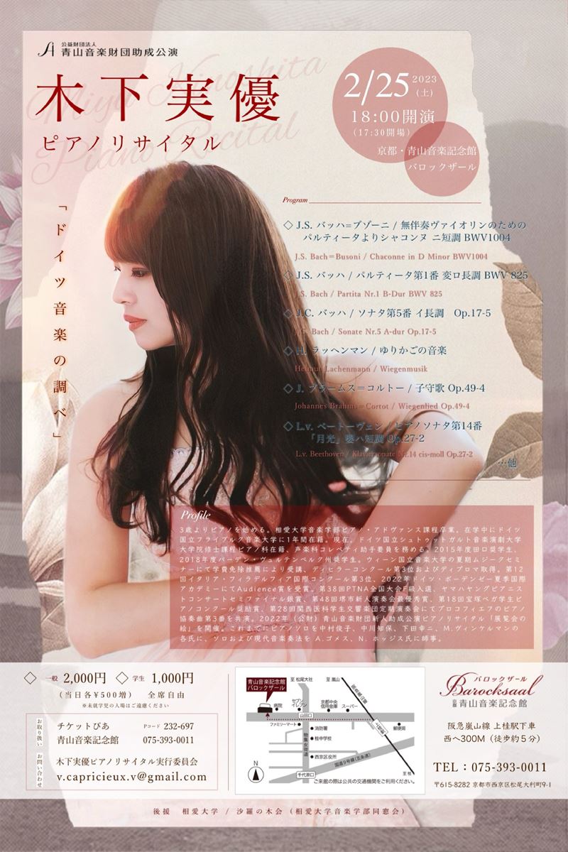木下実優 ピアノリサイタル 23/2/25(土) 青山音楽記念館(バロックザール) シェア ツイート 公演情報 ジャンル ピアノ・鍵盤楽器 未就学児童は入場不可。【問合せ】木下実優 ピアノリサイタル実行委員会 E-mail:v.capricieux.v@gmail.com 料金 前売一般-2,000円 前売学生-1,000円 前売学生-大学生以下 表示できるチケット情報はありません詳しくはこちら キャスト&スタッフ ピアノ 木下実優 公式サイト シェア ツイート