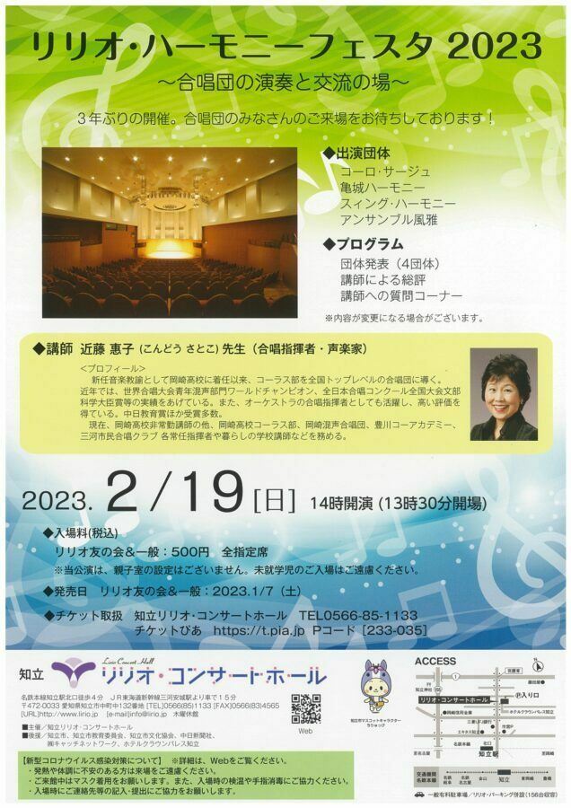 リリオ・ハーモニーフェスタ2023 23/2/19(日) 知立リリオ・コンサートホール シェア ツイート 公演情報 ジャンル 声楽 ※未就学児入場不可 料金 全指定席-500円 表示できるチケット情報はありません詳しくはこちら お問い合わせ リリオ・コンサートホール シェア ツイート
