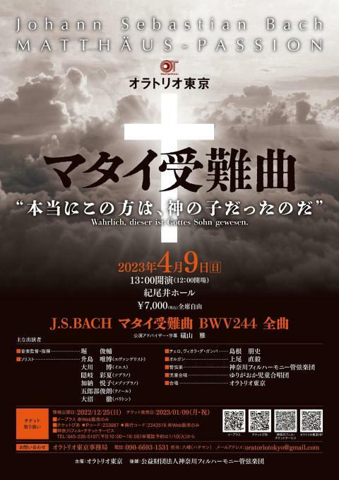 オラトリオ東京「マタイ受難曲」演奏会 23/4/9(日) 紀尾井ホール シェア ツイート すべての写真(2)を見る すべての写真(2)を見る 公演情報 ジャンル オーケストラ 声楽 料金 自由席-7,000円 表示できるチケット情報はありません詳しくはこちら キャスト&スタッフ 指揮 堀俊輔 出演 升島唯博 大川博 隠岐彩夏 加納悦子 五郎部俊朗 大沼徹 島根朋史 上尾直毅 共演 神奈川フィルハーモニー管弦楽団 ゆりがおか児童合唱団 合唱 オラトリオ東京 お問い合わせ オラトリオ東京 シェア ツイート