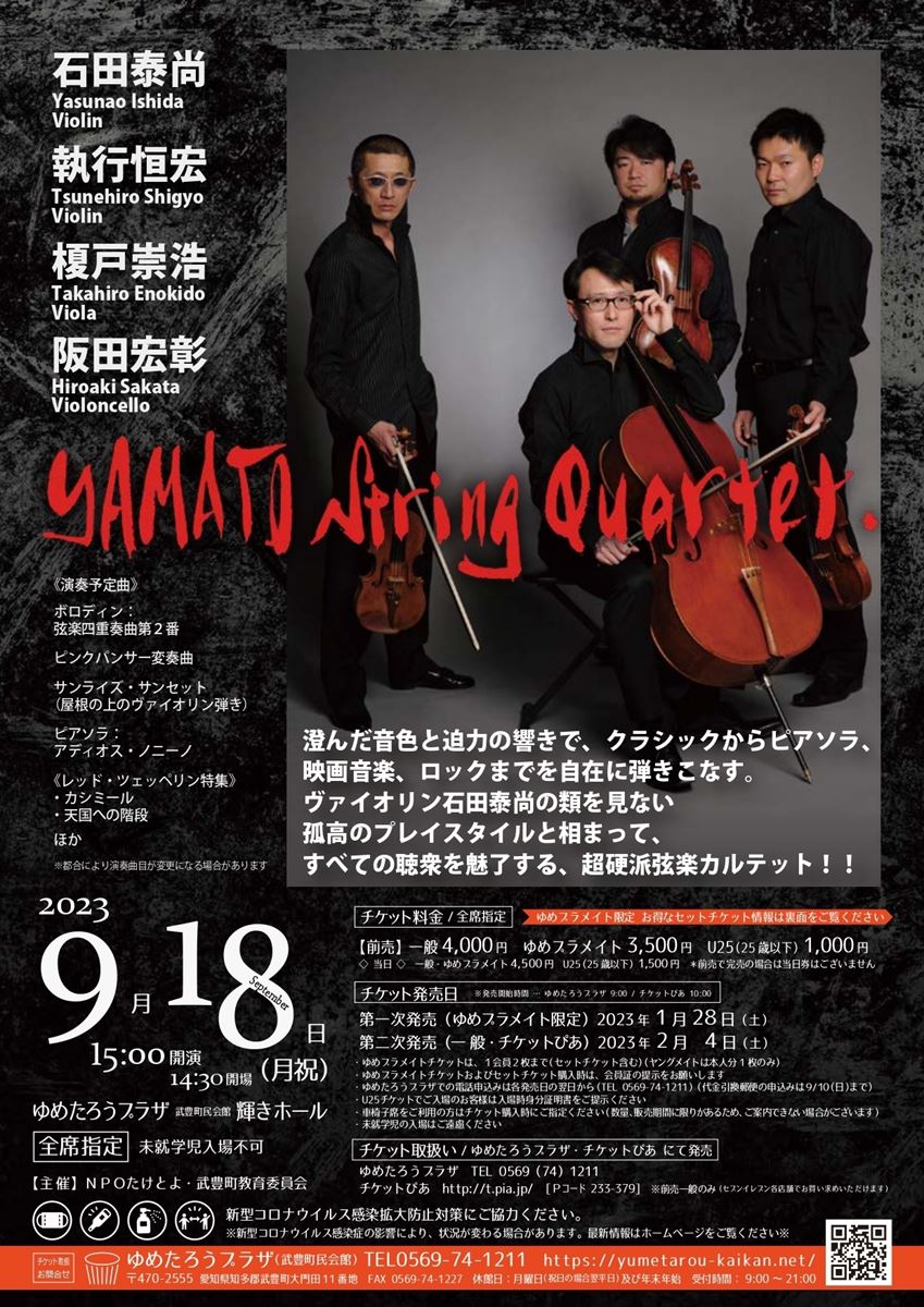 澄んだ音色と迫力の響きで、クラシックからピアソラ、映画音楽、ロックまでを自在に弾きこなす。ヴァイオリン石田泰尚の類を見ない孤高のプレイスタイルと相まって、すべての聴衆を魅了する、超硬派弦楽カルテット!!