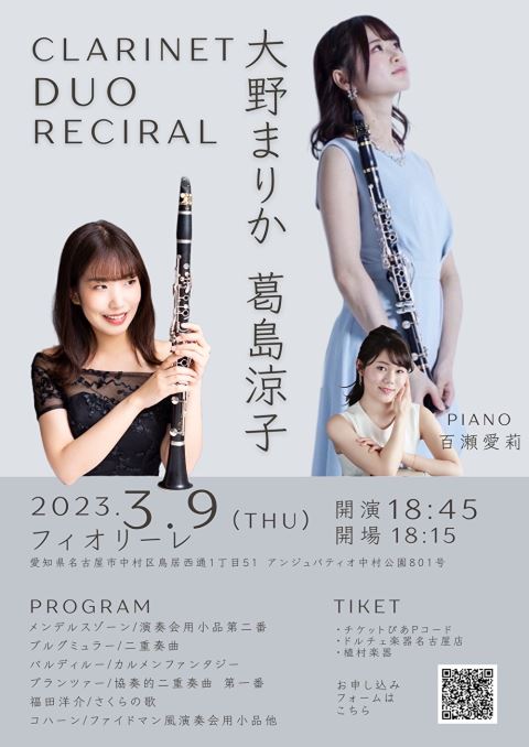 大野まりか&葛島涼子 デュオリサイタル 23/3/9(木) スタジオ・フィオリーレ シェア ツイート 公演情報 ジャンル 器楽 室内楽 料金 全席自由 一般-4,000円 全席自由 学生-2,500円 表示できるチケット情報はありません詳しくはこちら キャスト&スタッフ 出演 葛島涼子 大野まりか 百瀬愛莉 お問い合わせ marika_clarinet@outlook.com シェア ツイート
