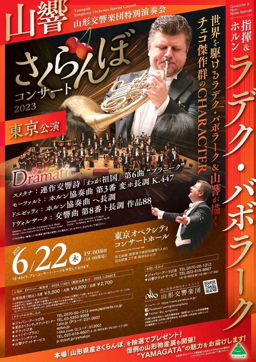 山形交響楽団 特別演奏会 さくらんぼコンサート 2023 東京公演 23/6/22(木) 東京オペラシティ コンサートホール:タケミツメモリアル シェア ツイート すべての写真(2)を見る 世界を駆けるラデク・バボラーク&山響が描くチェコ傑作群のCHARACTER すべての写真(2)を見る 公演情報 ジャンル オーケストラ 未就学児童は入場不可。18:45よりプレ・コンサート・トークあり。会場内では常時マスクをご着用ください。マスクを着用されていない方はご入場をお断りします。 料金 S席-5,800円 A席-4,800円 B席-2,700円 表示できるチケット情報はありません詳しくはこちら キャスト&スタッフ 指揮&ホルン ラデク・バボラーク 管弦楽 山形交響楽団 お問い合わせ ジャパン・アーツぴあ 公式サイト シェア ツイート