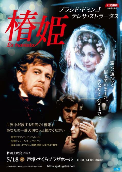 オペラ映画『椿姫』特別上映会 23/5/18(木) 戸塚区民文化センター さくらプラザ ホール シェア ツイート 何度でも観たい!世界中が涙する永遠の「椿姫」 公演情報 ジャンル オペラ 声楽 ※未就学児の入場不可 料金 全席自由-2,500円 表示できるチケット情報はありません詳しくはこちら キャスト&スタッフ 出演 テレサ・ストラータス プラシド・ドミンゴ お問い合わせ 樂画会(がくがかい) シェア ツイート