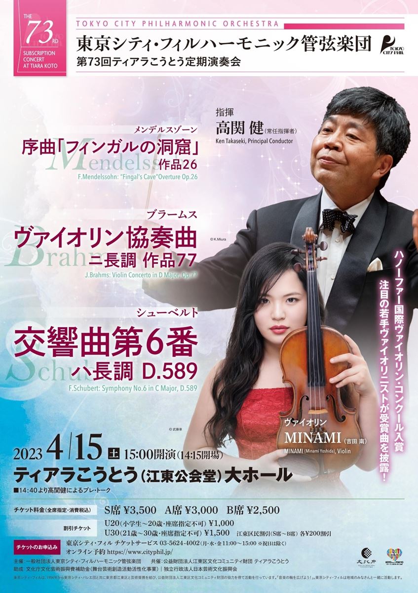 2023年度最初のティアラ定期は、常任指揮者 高関健によるロマン派プログラムで幕を開けます。ハノーファー国際ヴァイオリンコンクール入賞の吉田南が受賞曲を披露!