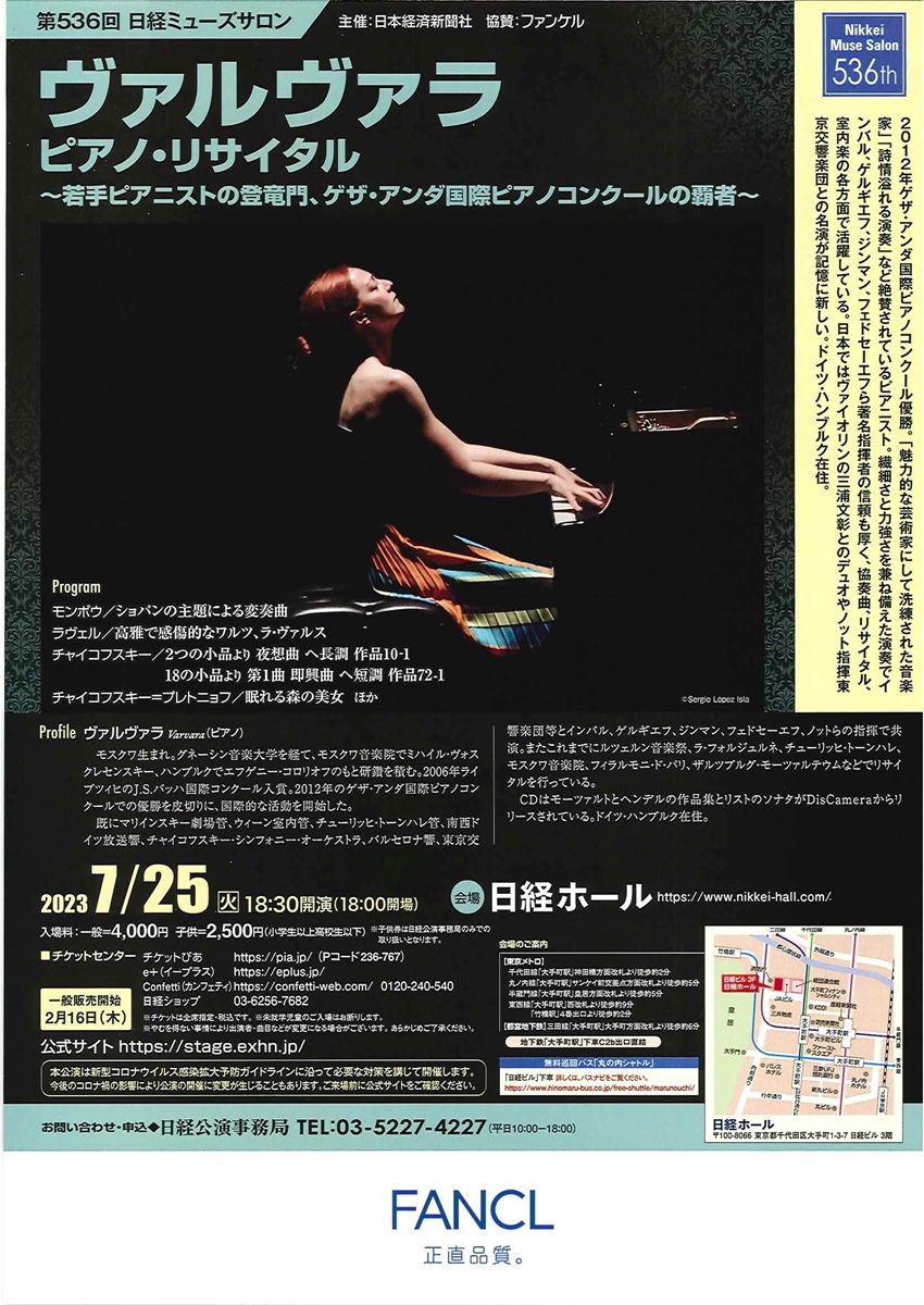 ヴァルヴァラ ピアノ・リサイタル/第536回日経ミューズサロン 23/7/25(火) 日経ホール シェア ツイート 若手ピアニストの登竜門、ゲザ・アンダ国際ピアノコンクールの覇者 公演情報 ジャンル ピアノ・鍵盤楽器 未就学児童は入場不可。 料金 一般-4,000円 表示できるチケット情報はありません詳しくはこちら キャスト&スタッフ ピアノ ヴァルヴァラ お問い合わせ 日経公演事務局 公式サイト シェア ツイート