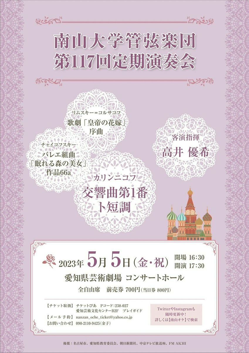 南山大学管弦楽団 第117回定期演奏会 23/5/5(金) 愛知県芸術劇場 コンサートホール シェア ツイート 公演情報 ジャンル 器楽 室内楽 未就学児童は入場不可。 料金 自由席-700円 表示できるチケット情報はありません詳しくはこちら お問い合わせ 南山大学管弦楽団(金子) シェア ツイート