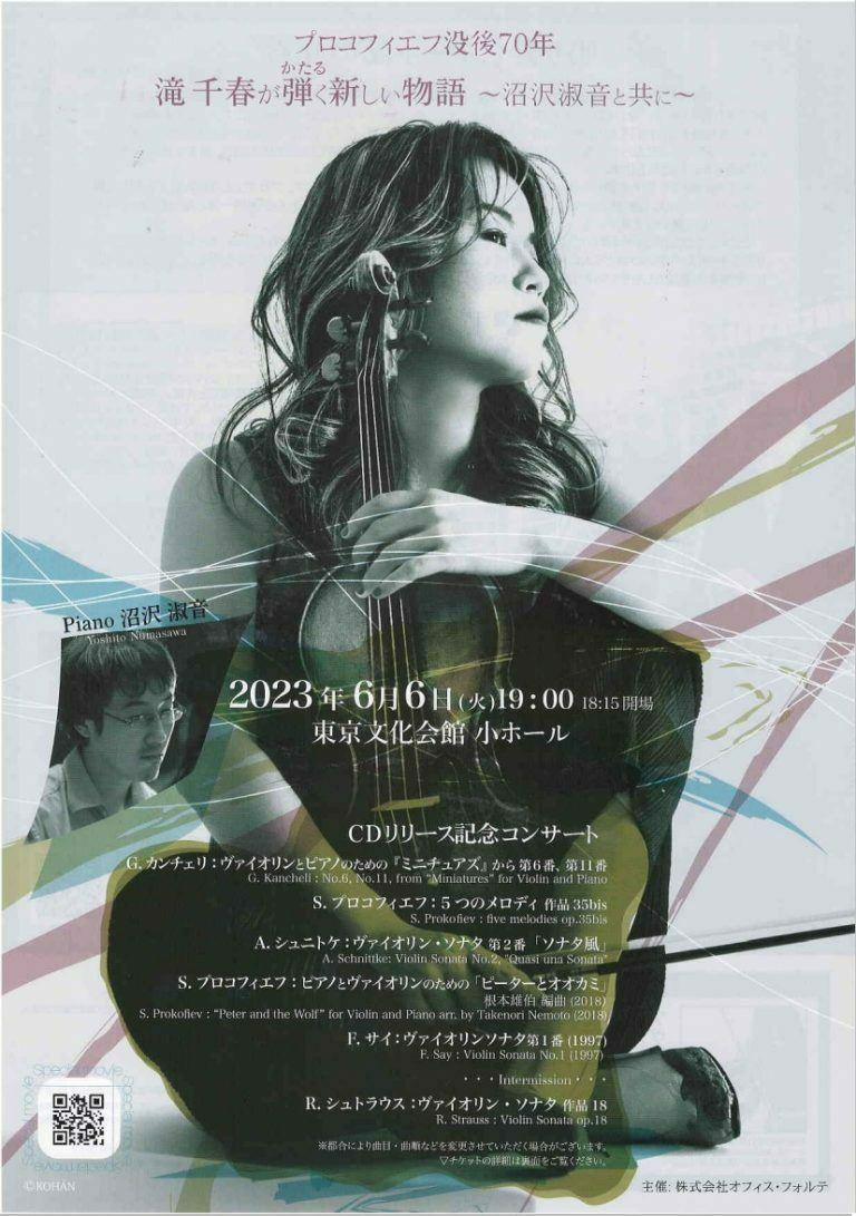 CDリリース記念 滝千春ヴァイオリン・リサイタル 23/6/6(火) 東京文化会館 小ホール シェア ツイート ヴァイオリンの滝千春が弾(かたる)新しい物語~ピアノの沼沢淑音と共に~ ヴァイオリンリサイタル 公演情報 ジャンル 器楽 やむを得ない事情により出演者、曲目等が変更になる場合がございます。公演中止を除きお買い求め頂いたチケットのキャンセル・変更等は出来ません。いかなる場合にもチケットの再発行は出来ません。紛失等には十分ご注意下さい。未就学児童の同伴はご遠慮下さい。また、就学児以上のお子様もご入場には1人1枚チケットが必要です。場内での写真撮影・録音・録画・携帯電話等の使用は固くお断り致します。 料金 一般-4,500円 シニア(65歳以上)-4,000円 学生-2,500円 表示できるチケット情報はありません詳しくはこちら キャスト&スタッフ 出演 滝千春 沼沢淑音 お問い合わせ (株)オフィス・フォルテ シェア ツイート