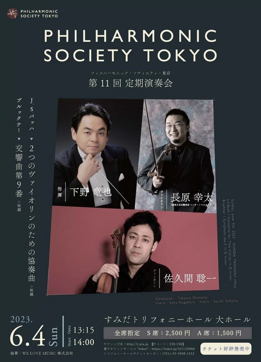 フィルハーモニック・ソサィエティ・東京 23/6/4(日) すみだトリフォニーホール 大ホール シェア ツイート J. S. バッハ:2つのヴァイオリンのための協奏曲 ニ短調/ブルックナー:交響曲第9番 ニ短調 公演情報 ジャンル オーケストラ 未就学児童は入場不可。【お問合せ】philharmonic.society.tokyo@gmail.com 料金 S席-2,500円 A席-1,500円 表示できるチケット情報はありません詳しくはこちら キャスト&スタッフ 指揮 下野竜也 出演 フィルハーモニック・ソサィエティ・東京 共演 長原幸太 佐久間聡一 公式サイト シェア ツイート