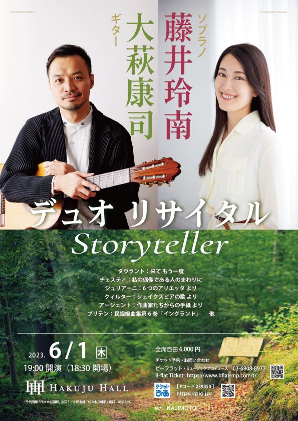 藤井玲南 大萩康司 デュオリサイタル 23/6/1(木) Hakuju Hall シェア ツイート ダウラント:来て もう一度/チェスティ:私の偶像である人のまわりに/ジュリアーニ:6つのアリエッタ より/クィルター:シェイクスピアの歌 より/アージェント:作曲家たちからの手紙 より/ブリテン:民謡編曲集第6巻『イングランド』/他 公演情報 ジャンル 声楽 器楽 未就学児入場不可 料金 全席自由-6,000円 表示できるチケット情報はありません詳しくはこちら キャスト&スタッフ 出演 藤井玲南 大萩康司 お問い合わせ ビーフラット・ミュージックプロデュース 公式サイト シェア ツイート