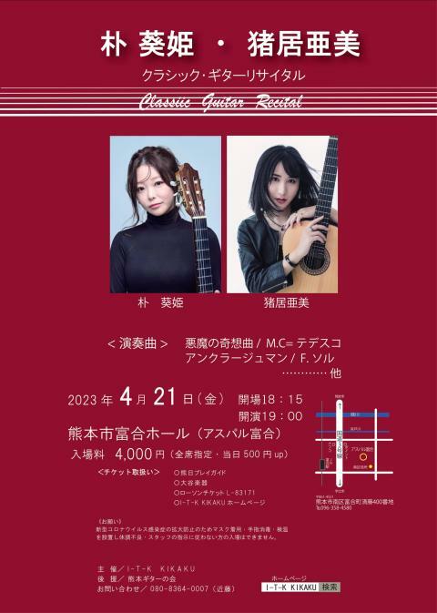 朴葵姫・猪居亜美クラシックギターリサイタル IN 熊本 23/4/21(金) 熊本市富合ホール(アスパル富合) シェア ツイート 朴 葵姫・猪居亜美クラシックギタ-リサイタル IN 熊本 公演情報 ジャンル 器楽 室内楽 当日会場内は不織布マスク着用を推奨いたします。変更は随時ホ-ムペ-ジにてお知らせしております。 料金 全席指定-4,000円 表示できるチケット情報はありません詳しくはこちら お問い合わせ I-T-K KIKAKU シェア ツイート