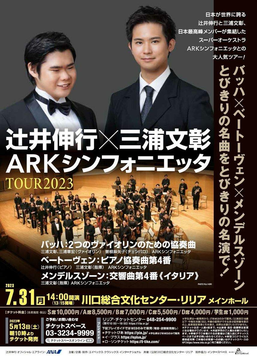 未就学児童は入場不可。やむを得ない事情により出演者・曲目・曲順等が変更になる場合がございます。車椅子での来場は購入前に問合せ先までご連絡ください。新型コロナウイルス感染症対策の最新情報・ご来場のお客様へのお願いはチケットスペースのHP(https://www.ints.co.jp/)をご確認ください。