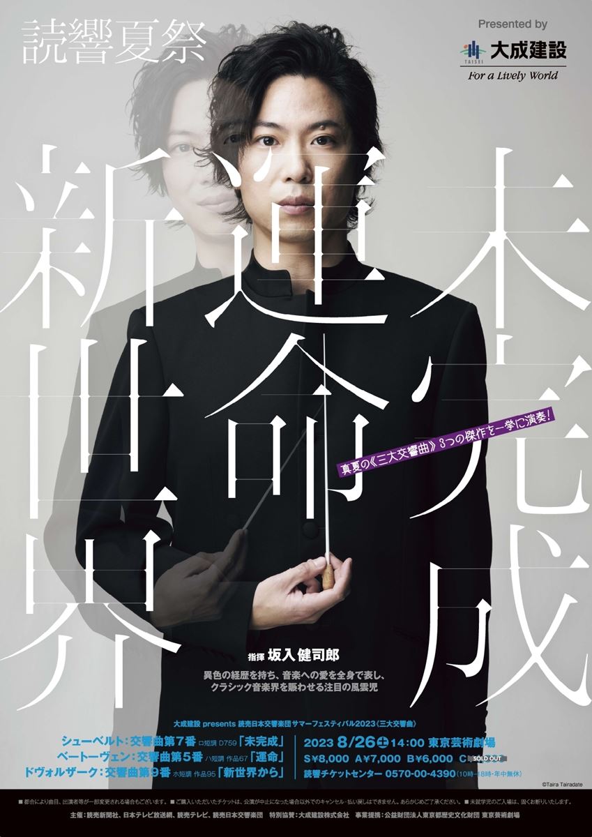 読響サマーフェスティバル2023<三大交響曲> 23/8/26(土) 東京芸術劇場 コンサートホール シェア ツイート シューベルト:交響曲第7番 ロ短調 D759「未完成」/ベートーヴェン:交響曲第5番 ハ短調 作品67「運命」/ドヴォルザーク:交響曲第9番 ホ短調 作品95「新世界から」 公演情報 ジャンル オーケストラ 未就学児童は入場不可。車椅子席は問合せ先まで。 料金 S席-8,000円 A席-7,000円 B席-6,000円 C席-4,500円 表示できるチケット情報はありません詳しくはこちら キャスト&スタッフ 指揮 坂入健司郎 管弦楽 読売日本交響楽団 お問い合わせ 読響チケットセンター 公式サイト シェア ツイート