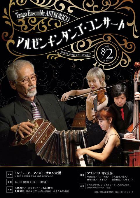 アルゼンチンタンゴ・コンサート 23/8/2(水) ドルチェ・アーティスト・サロン大阪 シェア ツイート すべての写真(2)を見る 日本を代表するアルゼンチンタンゴ楽団「アストロリコ」のコンサートを大阪梅田で! すべての写真(2)を見る 公演情報 ジャンル 器楽 室内楽 学生料金は、メール・電話でのご予約のみとなります。詳細は問合せ先まで。 料金 全席自由-4,000円 表示できるチケット情報はありません詳しくはこちら キャスト&スタッフ メンバー 麻場利華 後藤雅史 お問い合わせ OTRA音楽事務所 シェア ツイート