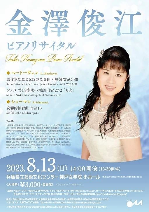 金澤俊江ピアノリサイタル 23/8/13(日) 兵庫県立芸術文化センター 神戸女学院小ホール シェア ツイート 公演情報 ジャンル ピアノ・鍵盤楽器 未就学児童は入場不可。 料金 自由席-3,000円 表示できるチケット情報はありません詳しくはこちら キャスト&スタッフ ピアノ 金澤俊江 お問い合わせ 大阪アーティスト協会 シェア ツイート
