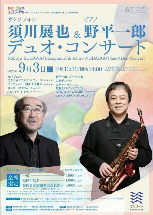 静岡・室内楽フェスティバル2023 須川展也&野平一郎 デュオ・コンサート 23/9/3(日) 静岡市清水文化会館(マリナート) 大ホール シェア ツイート 公演情報 ジャンル 器楽 室内楽 高校生以下は当日要証明書提示。未就学児童は入場不可。 料金 一般-4,000円 高校生以下-1,000円 表示できるチケット情報はありません詳しくはこちら キャスト&スタッフ 出演 須川展也 野平一郎 お問い合わせ 静岡市清水文化会館マリナート 公式サイト シェア ツイート