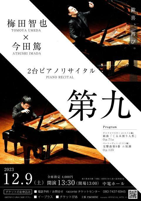 梅田智也×今田篤2台ピアノリサイタル ~第九~ 23/12/9(土) 中電ホール シェア ツイート すべての写真(2)を見る すべての写真(2)を見る 公演情報 ジャンル ピアノ・鍵盤楽器 未就学児のご入場はご遠慮ください。キャンセル・座席変更不可。 料金 全席指定-4,000円 表示できるチケット情報はありません詳しくはこちら キャスト&スタッフ 出演 梅田智也 今田篤 お問い合わせ raconteコンサート事務局 シェア ツイート