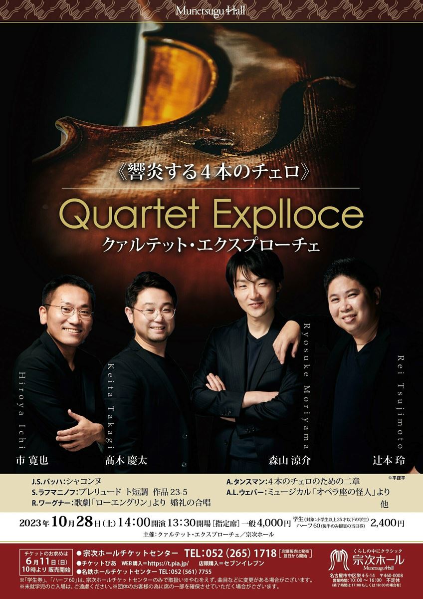 学生券・セット券は、宗次ホールチケットセンターでのみ販売いたします。未就学児童は入場不可。公演開催についての最新情報は宗次ホールホームページまたは問合せ先までご確認ください。感染対策/座席定員/中止・振替等についてhttps://munetsuguhall.com/news/ 入場整理番号についてhttps://munetsuguhall.com/news/general/entry-2478.html ご確認の上、ご来場いただきますようお願い致します。