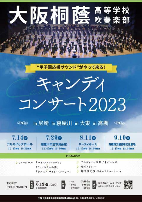 大阪桐蔭高等学校吹奏楽部 キャンディコンサート in 高槻 23/9/10(日) 高槻城公園芸術文化劇場 南館 トリシマホール シェア ツイート すべての写真(2)を見る 迫力のサウンドによる、ミュージカルやマーチングなど、盛り沢山な内容! すべての写真(2)を見る 公演情報 ジャンル 吹奏楽 料金 全席自由 一般-2,000円 全席自由 中学生-1,000円 全自由 小学生以下-500円 表示できるチケット情報はありません詳しくはこちら キャスト&スタッフ 演奏 大阪桐蔭高等学校吹奏楽部 お問い合わせ 大阪桐蔭高等学校吹奏楽部 シェア ツイート