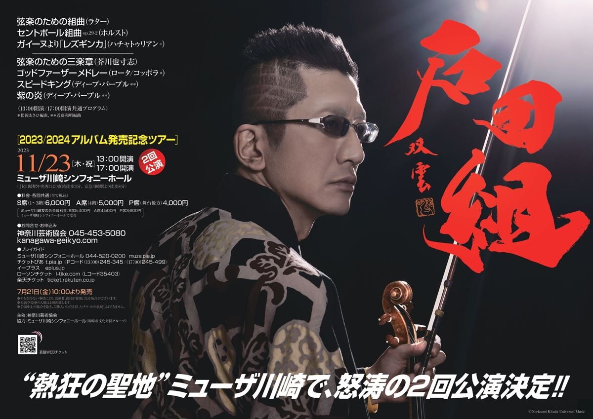石田組(13時公演) 23/11/23(木) ミューザ川崎シンフォニーホール シェア ツイート すべての写真(2)を見る ミューザ川崎で、怒涛の2回公演決定! すべての写真(2)を見る 公演情報 ジャンル 器楽 室内楽 未就学児童は入場不可。曲目は予定のため変更の可能性あり。 料金 S席(1~3階席)-6,000円 A席(4階席)-5,000円 P席(舞台後方席)-4,000円 表示できるチケット情報はありません詳しくはこちら キャスト&スタッフ 出演 石田組 お問い合わせ 神奈川芸術協会 公式サイト シェア ツイート