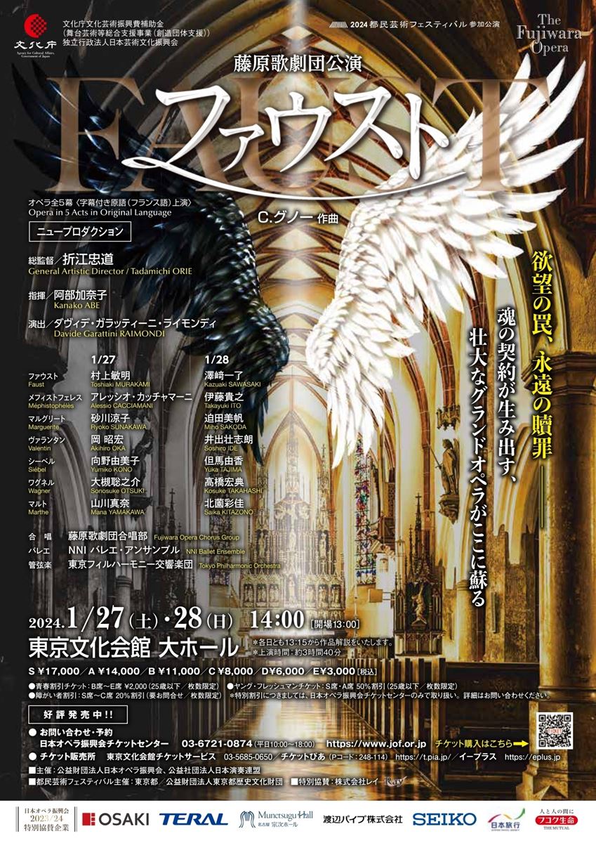 欲望の罠、永遠の贖罪。魂の契約が生み出す、壮大なグランドオペラがここに蘇る。創立90周年を迎える藤原歌劇団が29年振りに上演。合唱・バレエを含む豪華プロダクションを新制作